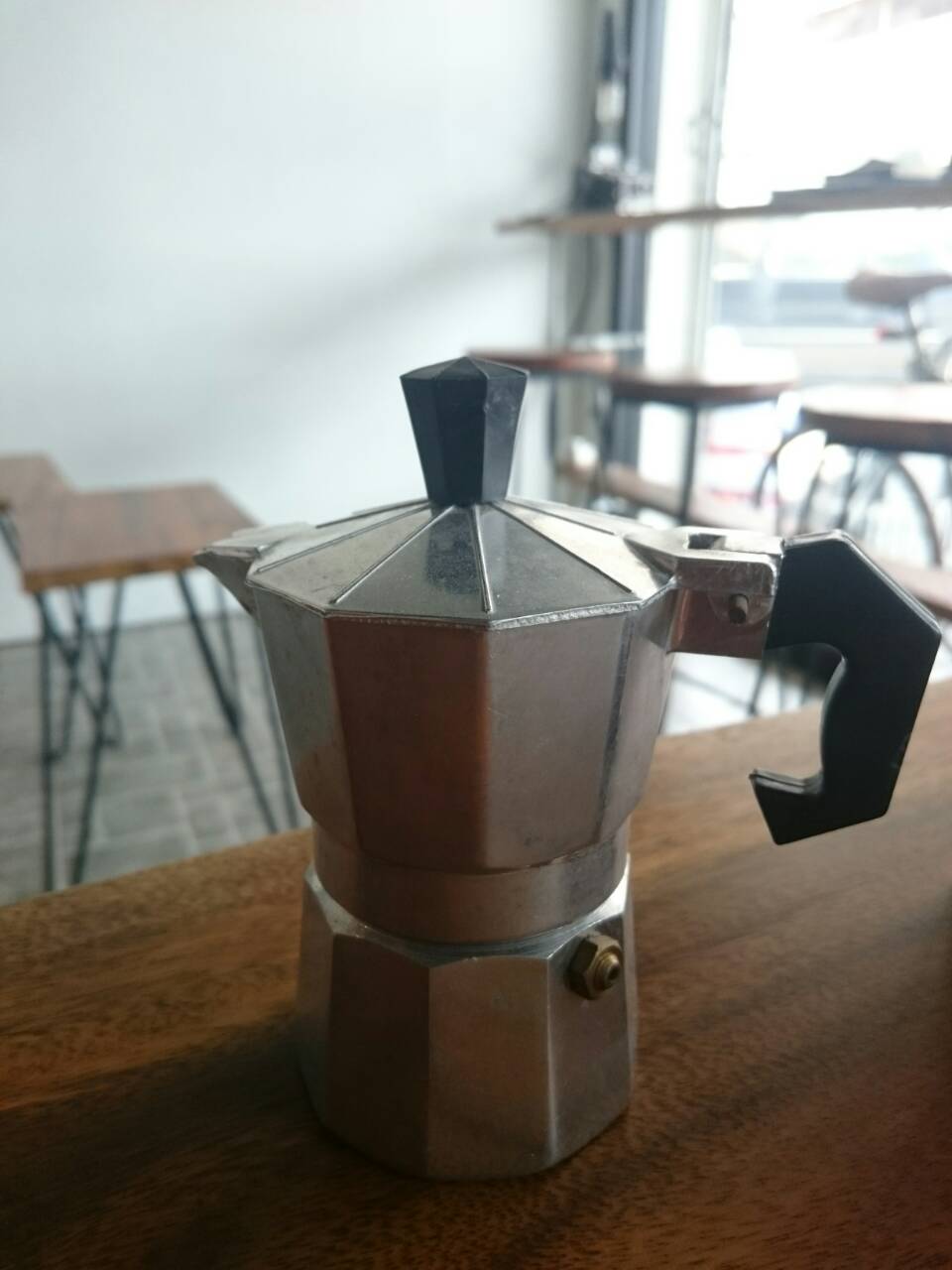 ซึ่งในขณะที่งานโครงสร้างเดินไป งานเรียนรู้ด้านกาแฟก็ต้องเดินตาม ก่อนหน้านี้ด้วยความที่ชอบกินชา ผมมีตัวชงชาอยู่แล้วที่ใช้ทำกินประจำ คือหม้อต้มแบบ moka pot ด้วยราคาที่ไม่แพงนัก พอเปิดร้าน ผมก็เลยตัดสินใจใช้ moka pot นี่แหละ เป็นตัวหลักในการทำงาน (หลังๆ มาพอเริ่มติดกาแฟ ก็เพิ่มแบบดริปเข้ามา กับหม้อดริปแบบเวียดนามเข้ามาสนองความต้องการของตัวเอง)