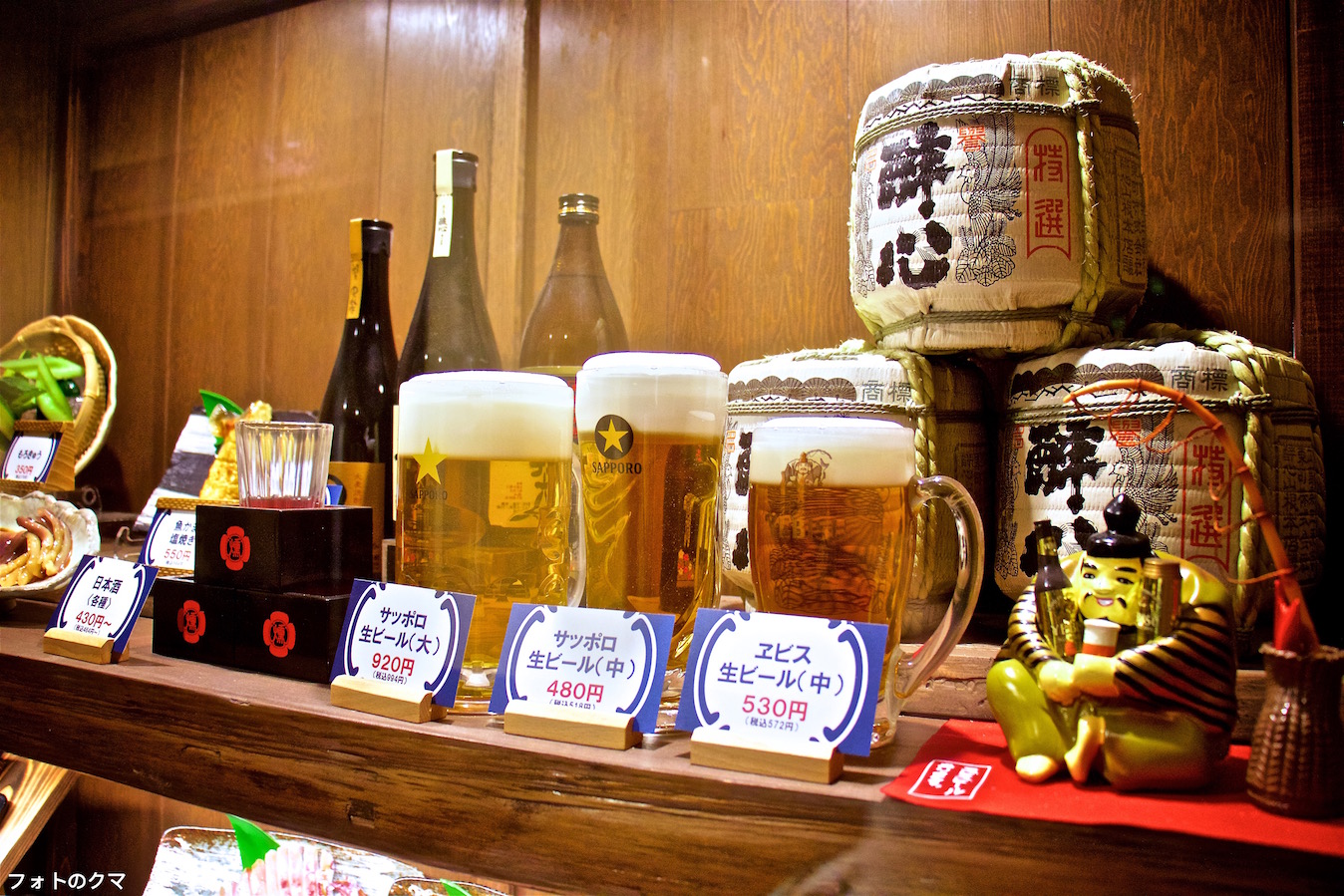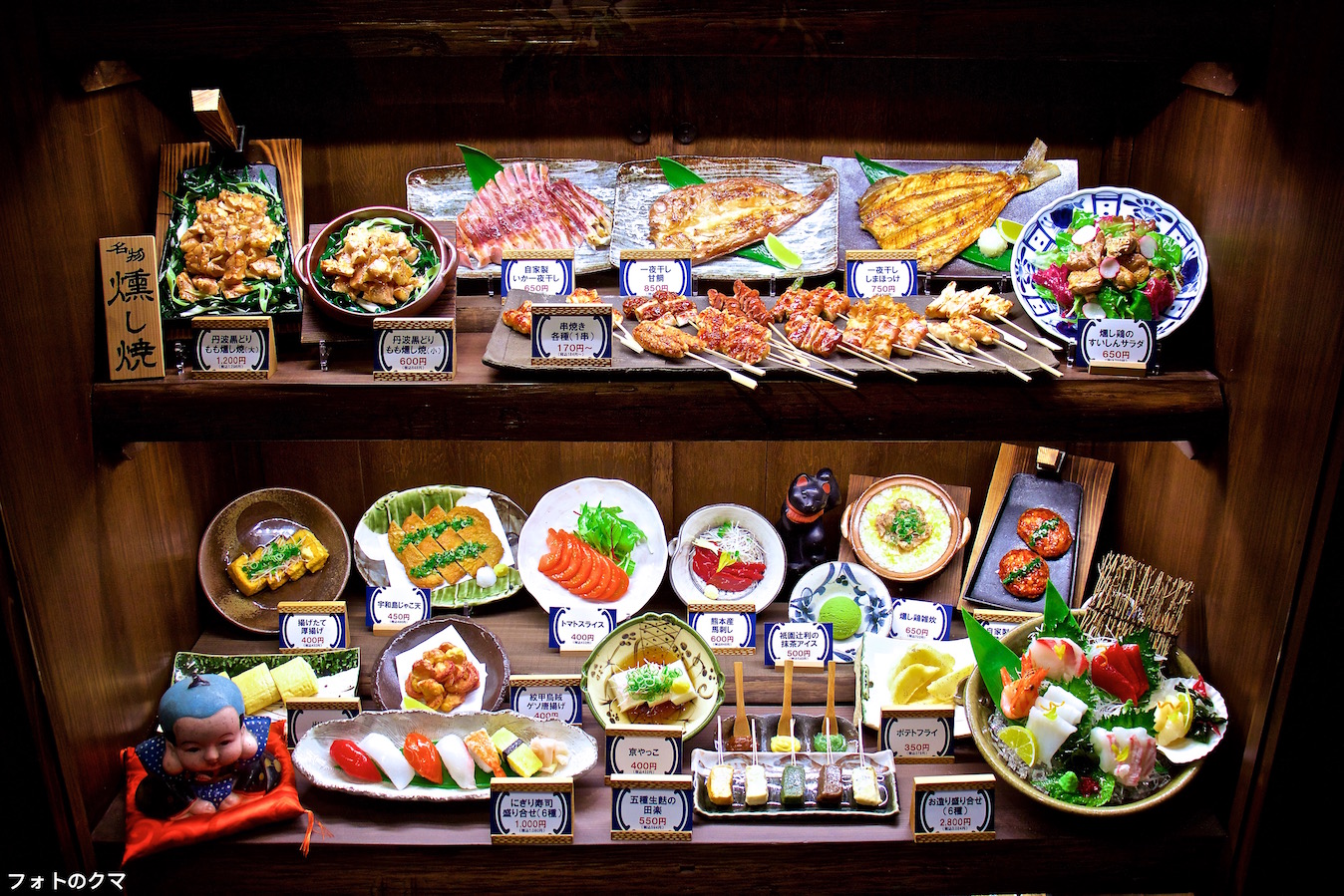 หน้าร้านก็มีแบบจำลองของกินต่างๆวางอวดไว้ โดนหลักๆก็เชิดชูเบียร์แล้วเหล่าของย่าง