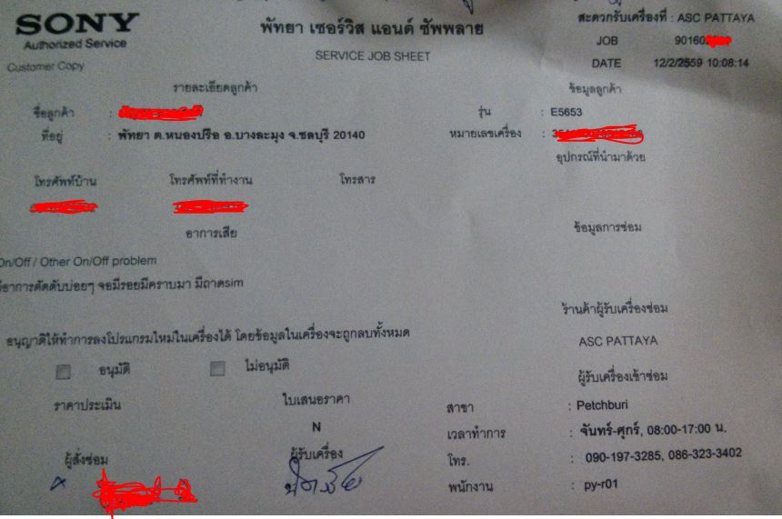 แต่ทั้งสองเบอร์ ให้ฟากข้อความตลอดเลยครับ ผมลองเข้าไปในเว็ปไซต์ของโซนี่ตามเข้าไปเช็คสถานะงานซ่อม