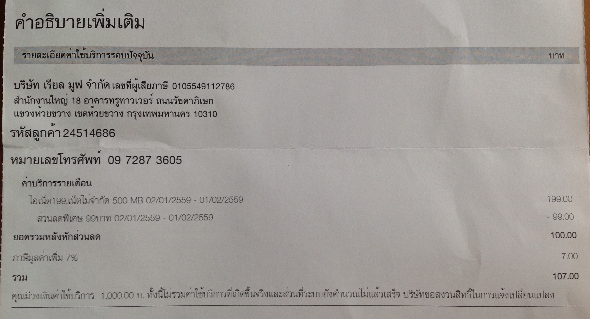 แต่จู่ๆ มีบิลมาเก็บ 107 บาท ไม่อยากโทรถามแล้วว่าค่าอะไร จะไปยกเลิกแระ
