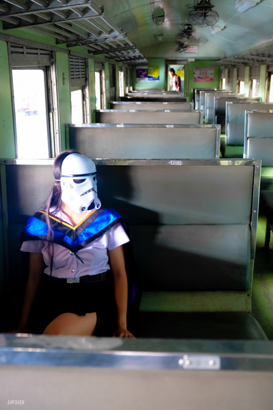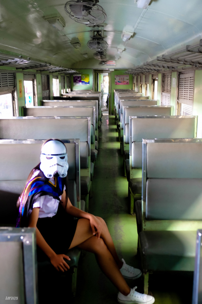 ...หลังจากที่นั่งอยู่บนรถไฟชั่วโมงกว่า รถไฟไม่ยอมออกสักที ก็เริ่มหงุดหงิดแล้วก็บอกว่าไปรถอื่นเถอะ รถมันไม่ยอมออก แล้วก็เดินนำผมไปอีกรอบ