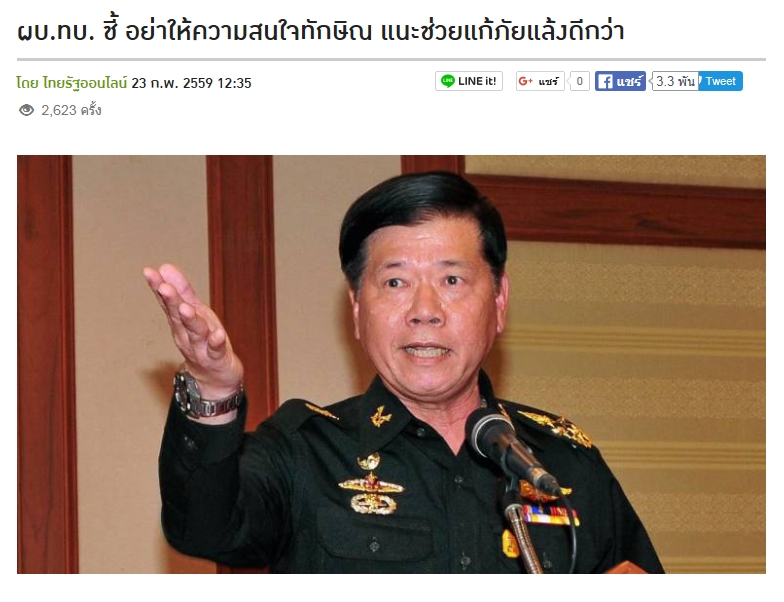 ผบ.ทบ. ชี้ อย่าให้ความสนใจทักษิณ แนะช่วยแก้ภัยแล้งดีกว่า / กลางแท้ๆไร้สีไร้กลิ่น