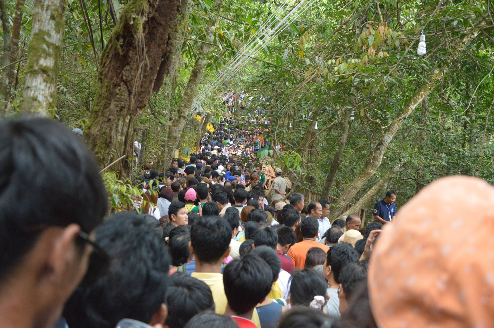 มาถึงจุดพีคสุดๆ ที่ทุกคนต้องสตรองมาก ในวันนั้น รถติดไม่พอ คนติดอีกทีนี้ คนข้างหลังก็จะถามต่อๆ กันมาว่าข้างหน้าติดอะไร ก็คือติดคนนี่แหละค่ะ ทางข้างหน้าเป็นคอขวดอยู่ระยะหนึ่งบวกกับสะพานไม้ยังทำไม่เสร็จ