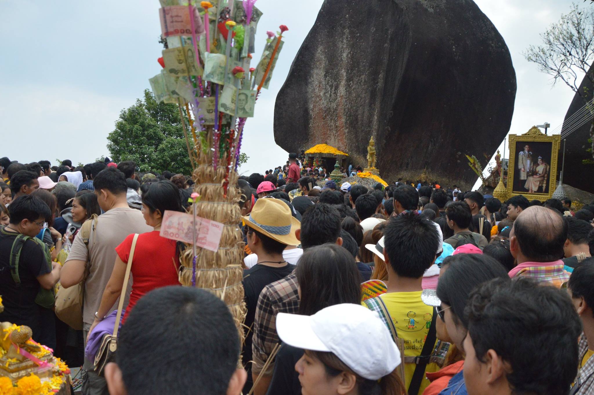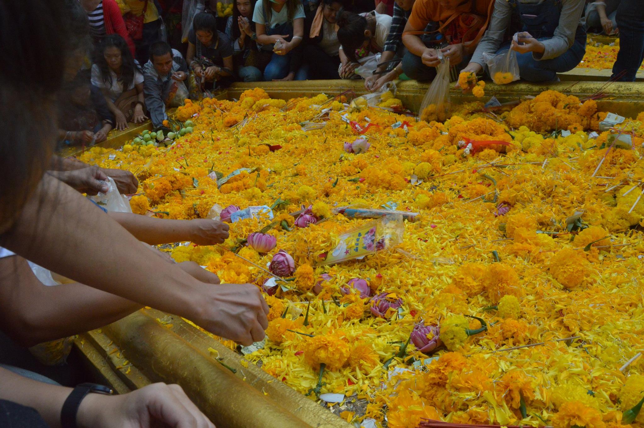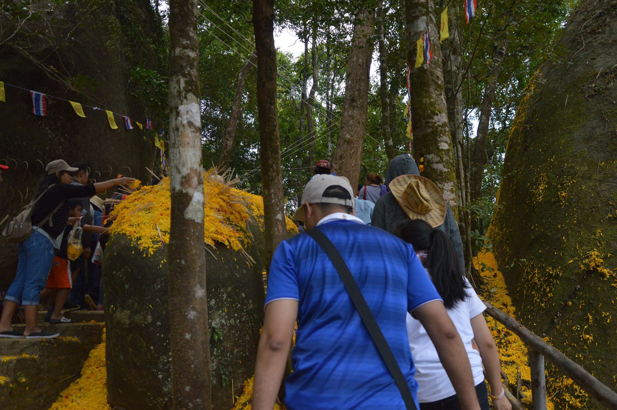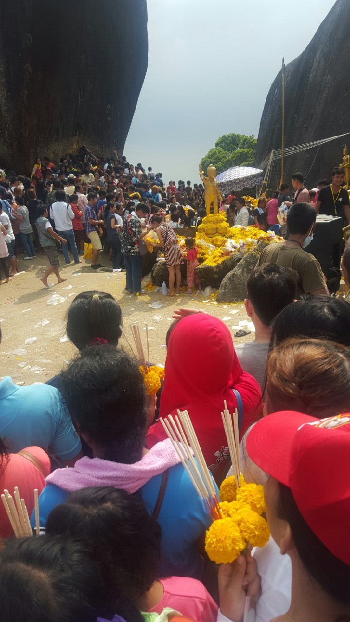 จุดพีคที่สองตรงนี้แหละค่ะ ที่ จขกท.และเพื่อนๆ ได้เข้าไปสักการะรอยพระพุทธบาทด้วยแรงผลักและแรงดัน ฝูงชนเยอะมาก ข้างหลังผลักข้างหน้า หัวนี่แทบคะมำ เท้านี้สไลด์ไปตามขั้นบันได โดยที่ไม่ได้ออกแรงเลยด้วยซ้ำ ถ้าไม่สตรองจริงกลายเป็นโดมิโน่ไปแล้วค่ะ สงสารแต่เด็กตัวน้อยๆ ที่ติดสอยห้อยตามมาโดนเบียด ร้องไห้งอแง ไหนจะคนท้องอีก โคตรเสี่ยงอ่ะ เสียดายไม่ได้เดินไปถึงผ้าแดง เพราะออกมาคนก็เยอะแทบไม่มีที่ยืนเลยอ่ะ ก็เลยพากันเดินลง ขาลงก็ไม่ค่อยติดเท่าไรนะ แล้วก็มาซื้อตั๋วขากลับที่จุดเดิมเลยค่ะ