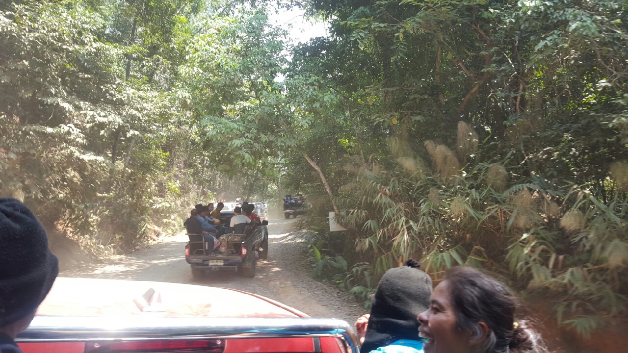 มาถึงทางขึ้นก่อนจุดต่อรถก็โหดพอสมควร มีโค้งหักศอกด้วยอ่ะ ยิ่งกว่าดอยสุเทพ เค้าขับรถกันคล่องมากแบบรู้ทางกัน สลับไปมา จขกท.และเพื่อนๆ นั่งข้างหลังนี่ลุ้นระทึก นึกว่าเล่นเรือเหาะ ***แนะนำขณะนั่งรถควรมีผ้าปิดจมูกหรือแว่นตา เนื่องจากฝุ่นเยอะมากจริงๆ ใครผมยาวรวบผมไว้ก็ดี แอบสอบถามชาวบ้านแถวนั้นมาช่วงเวลาที่ปิดเขาจะมีการฝึกขับรถกันด้วยนะ