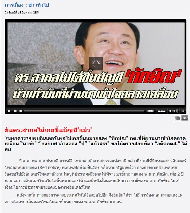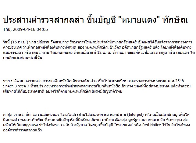 ตำรวจสากลได้ออก "หมายแดง" Red notice สำหรับพี่แม้วเรียบโร้ยย