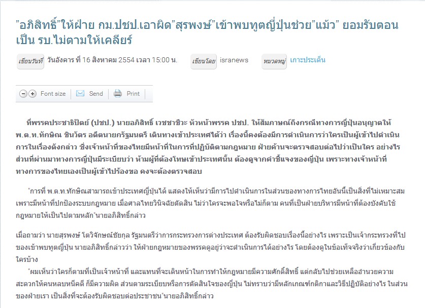 ว่าใช้อิทธิพลให้ทักษิณเข้าญี่ปุ่น ผิดกฏหมาย..ว่างั้น