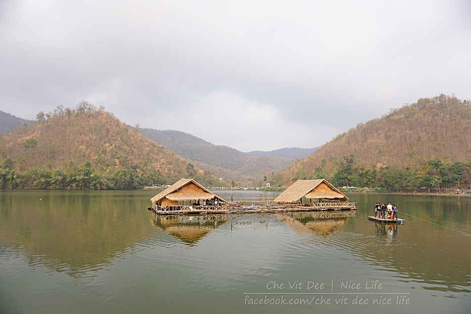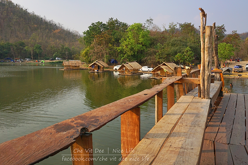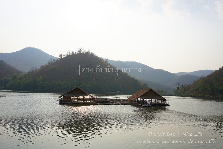 ถ้าเราหันหน้าเข้าอ่างเก็บน้ำ จะสังเกตเห็นว่าทางซ้ายมือ มีแพที่พักลอยอยู่บนน้ำให้บริการค่ะ