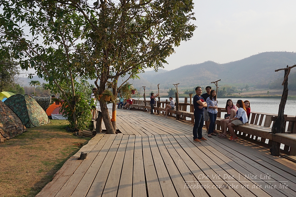 ถัดจากลานกางเต้นท์ก็จะเป็นระเบียงทอดยาวเลียบอ่างเก็บน้ำ กลางคืนก็ออกมานั่งเล่น ดูดาวกันตรงนี้