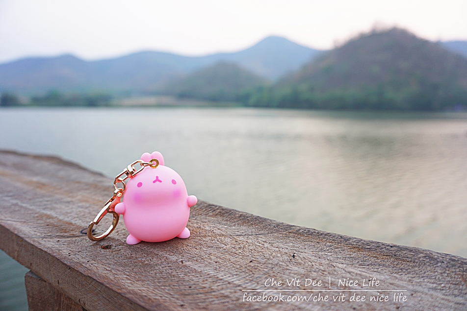 นางแบบตัวน้อยๆของเรา โดยมีฉากหลังเป็นอ่างเก็บน้ำ