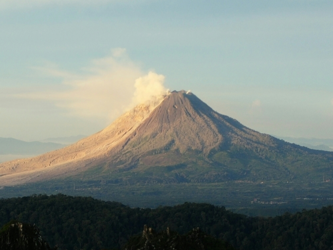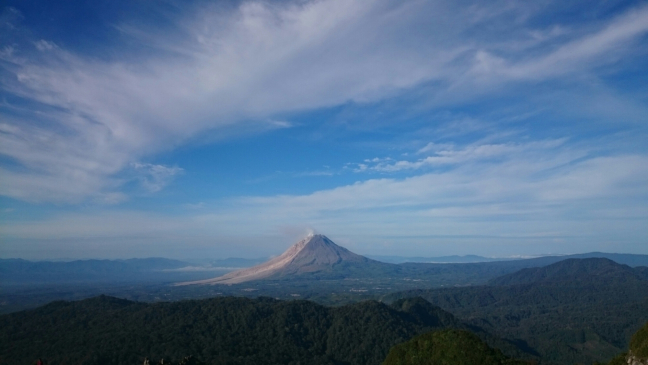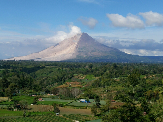 ภูเขาไฟซินาบุงสูง 2,460 เมตร ก่อนหน้านี้เจ้าหล่อน(ผมรู้สึกว่าซินาบุงจะเป็นผู้หญิงนะ ดูจากที่ช่วงนี้เอาแน่เอานอนไม่ได้ คุกกรุ่นตลอด) สงบเสงี่ยมมากว่า 400 ปี โดยพึ่งจะกลับมาแอ๊คทีฟเมื่อปี2010 เมื่อไม่นานนี้เอง หลังจากนั้นคุณเธอก็พิโรธอยู่เป็นระยะ ๆ หนักบ้าง เบาบ้าง