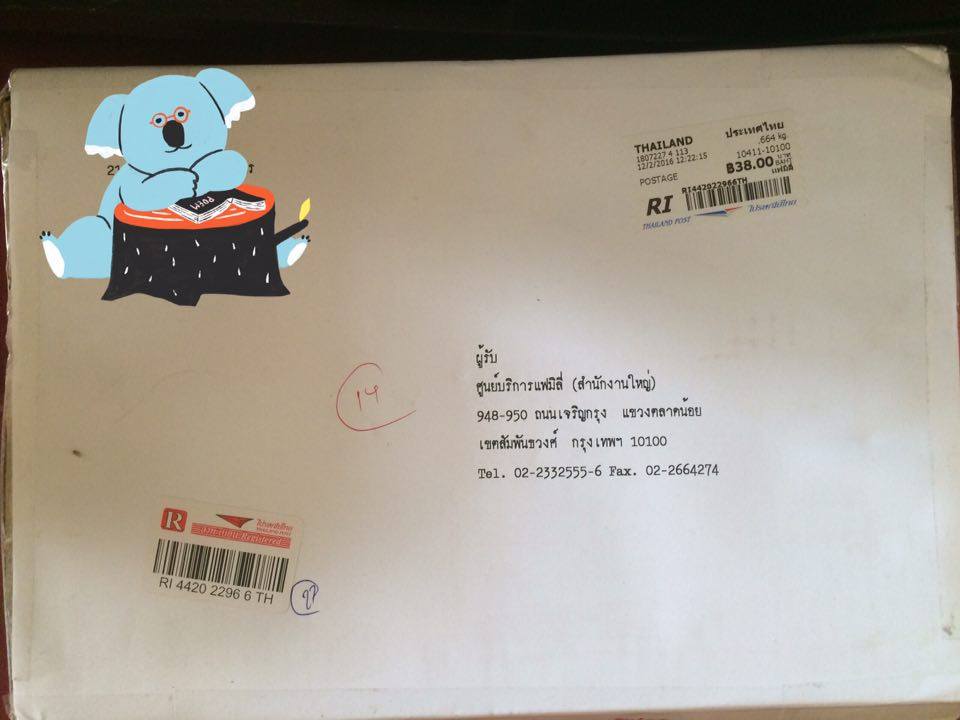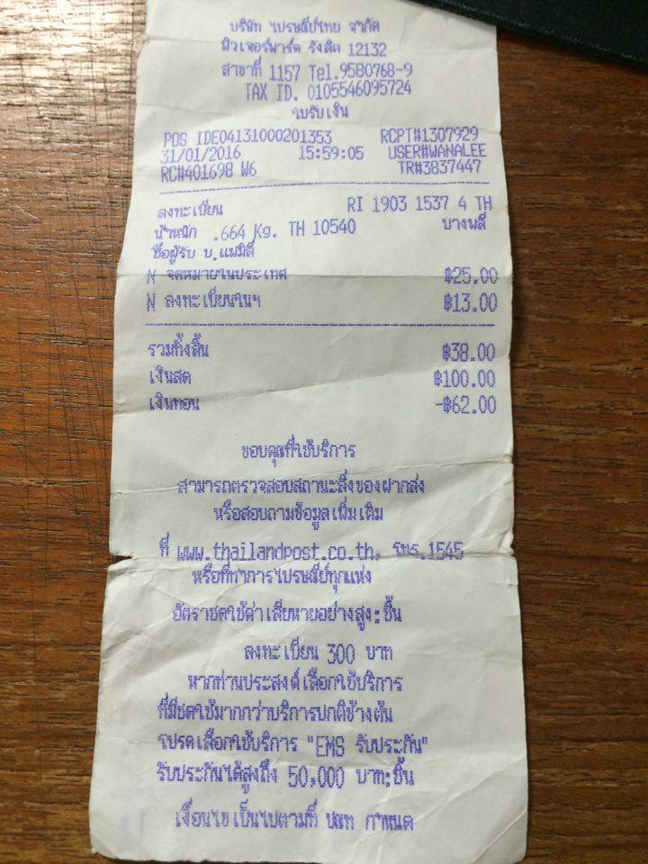 วันรุ่งขึ้นก็เตรียมส่งไปรษณีย์ทันที เราก็ส่งไปให้ทั้งกล่อง ทั้งใบรับประกัน ใบเสร็จที่ 7-11 ออกให้ ส่งรวมไปในกล่องใส่กล่องพัสดุ ซื้อซองกันกระแทกห่อกล่องไปอีกทีกันสินค้าเสียหายก่อนถึงมือช่าง  แล้วเขียนกระดาษโน๊ตแนบอาการบอกให้ช่างรับรู้ ส่งแบบลงทะเบียน (ส่งครั้งที่ 1)