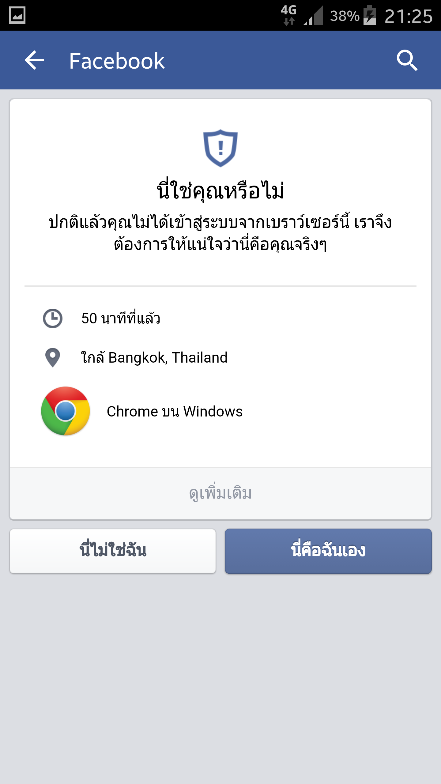 จากนั้นเลยเปลี่ยนรหัสแล้วลองใช้ chome เข้าใหม่จากโทรศัพท์ ก็มีแจ้งเตือนมาอีก แต่รายละเอียดบอกว่าจาก ss note4 ซึ่งถูกอยู่แล้วครับ