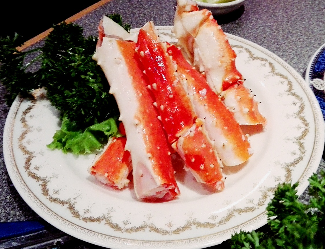 มาละครับสาวกปู ขาปูทาระบะครับ ขาอวบใหญ่ เสริฟแบบไม่ยั้ง ทีเด็ดมากๆ ถึงว่าตอนนี้จะเป็นแบบต้มสุกแช่แข็ง ทำให้เนื้อกระด้างไปหน่อย