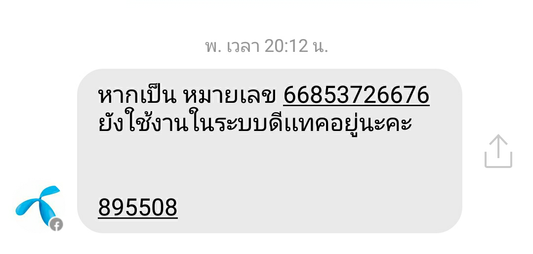 แล้วประมาณวันอังคารดีแทคส่งข้อความมาบอกว่าเบอร์ผมไม่อยู่ในเครือข่ายดีแทคแล้ว