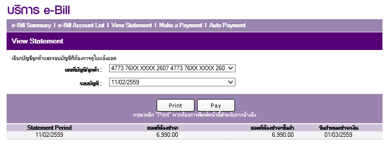 6 เดือนที่ผ่านมา e-Bill ในส่วนบัตรเครดิต ก็ชำระมาปกติโดยตลอด
