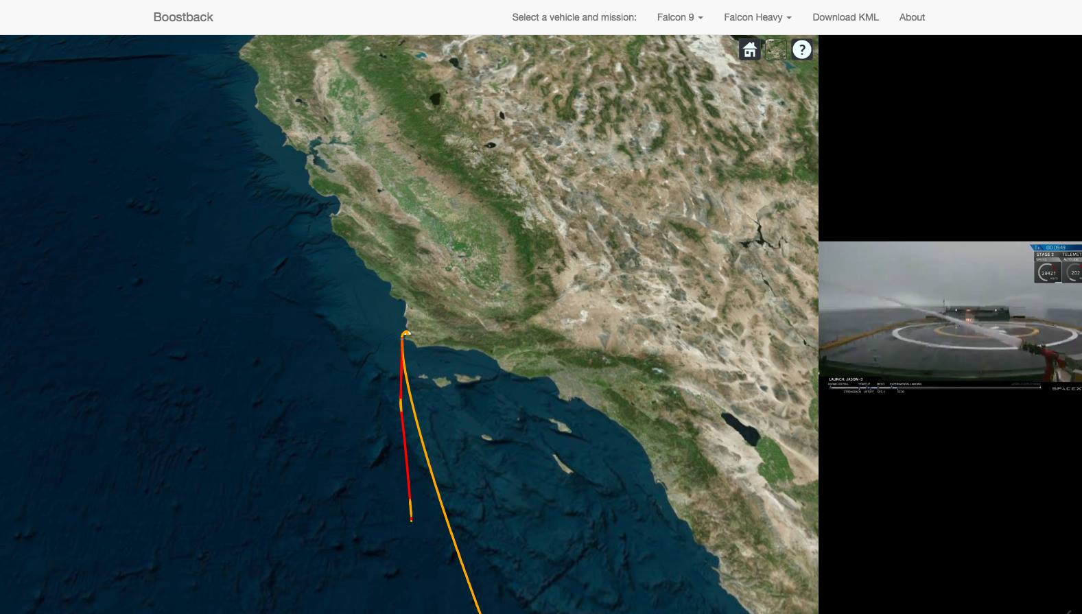 เว็บไซต์จำลองการเดินทางของจรวดรุ่นต่าง ๆ ของบริษัท SpaceX