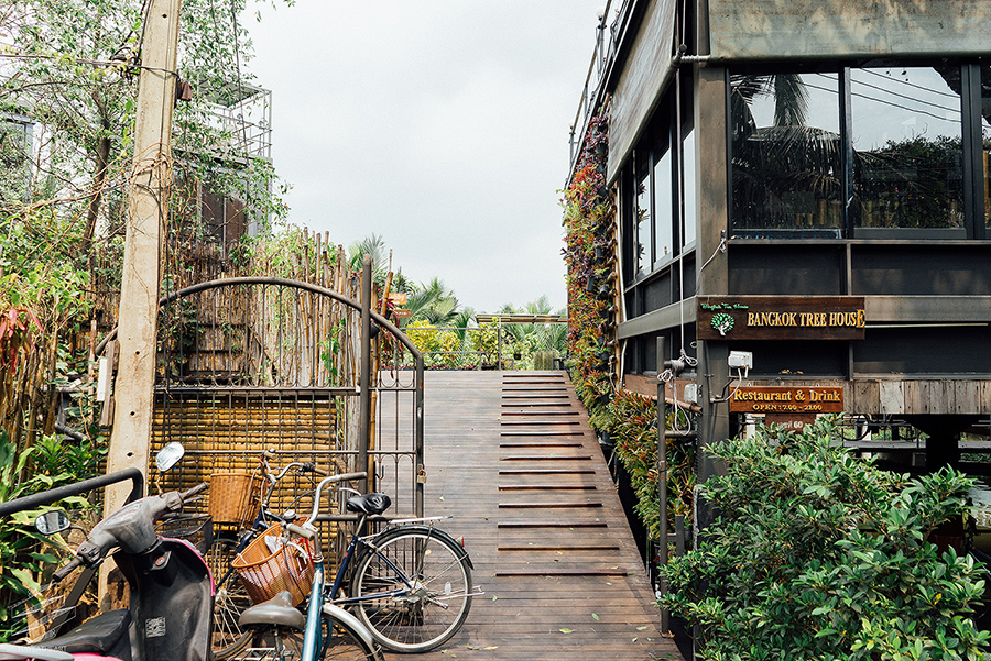 เป้าหมายต่อไปคือไป Bangkok Tree House เพราะเพื่อนอ่านรีวิวมาบอกว่าถ่ายรูปสวยดี อืมๆ ไปๆ กิจกรรมหลักก็คือถ่ายรูปอยู่แล้วนี่ ตอนแรกก็ตามแผนที่กระดาษอยู่ดีๆไอ้คนนำทางก็เปิดแผนที่ในโทรศัพท์แล้วบอกมีทางลัด เอาหละ ไปทางลัดก็ได้ แต่โห ทางโคตรจะแคบ เข้าป่าเค้าดงจนกลัวว่าตายไปก็คงไม่มีใครรู้แน่ๆแต่สุดท้ายก็ไปถึงจนได้ ใครไปแนะนำนะ ไปตามแผนที่ที่เค้าแจกเถอะ อย่าหาทางเองเลย อันตราย ถึงร้านเช่าจักรยานจะบอกว่าถ้าหลงให้โทรหาได้แต่ถ้าหลงแบบอยู่กลางดงอะไรก็ไม่รู้จะบอกเค้าว่ายังไงอะ หลงแบบหลงอย่างแท้จริงมันจะแย่เอานะ