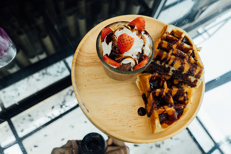 Bangkok Tree House เป็นที่พักแล้วก็เป็นร้านอาหารด้วย วันที่เราไปมีนักท่องเที่ยวนิดหน่อย พวกเราเพิ่งกินข้าวกันมาอิ่มๆเลยกินอะไรหนักๆไม่ไหวแล้ว ขอสั่งขนมมากินแก้เขินสักเล็กน้อยดีกว่า