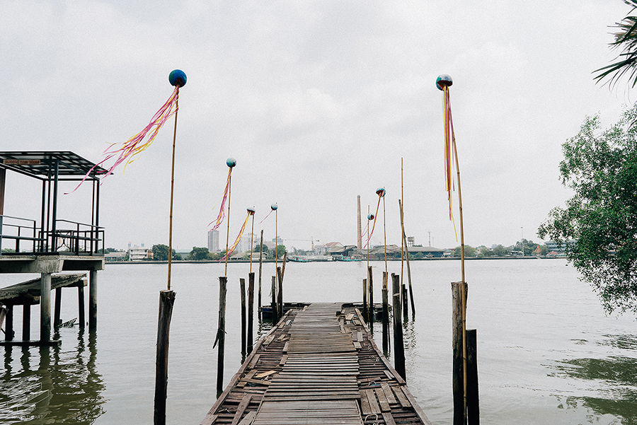 นัดเจอกับเพื่อนอีก 2 คนที่สถานีรถไฟใต้ดินศูนย์การประชุมสิริกิติ์ตอนสายๆ ออกทางออกฝั่งตรงข้ามศูนย์สิริกิติ์แล้วเรียกแท็กซี่ไปลงที่วัดคลองเตยนอก ไปช่วงรถไม่ติดเสียค่าแท็กซี่ไป 49 บาท แท็กซี่จอดตรงหน้าวัดมีร้านข้าวร้านขายของอะไรเยอะแยะ ลงจากรถปุ๊บก็ถูกจู่โจมปั๊บ มีน้าคนนึงแกเข้ามาถามว่าจะขึ้นเรือไปปั่นจักรยานฝั่งนู้นใช่มั้ย เนี่ยๆเช้าจักรยานร้านนี้สิใหม่ๆทั้งนั้นแล้วนั่งเรือฟรีเที่ยวนึงด้วยนะ จริงๆถ้าคิดๆไปแล้วก็ถูกกว่าไปเองแหละเพราะได้นั่งเรือฟรีขาไป แต่ด้วยความไม่ชอบการถูกฮาร์ดเซลล์ขนาดนั้นเลยหันหน้าหนีแล้วปล่อยให้เพื่อนเอาตัวรอดไปเอง
