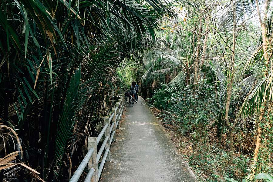 ถ่ายรูปเยอะจนรู้สึกว่าควรจะย้ายที่ได้แล้ว ตอนแรกว่าจะปั่นจักรยานกลับเลยแต่ออกไปเห็นป้ายว่าถนนสีเขียวแล้วดูแผนที่แล้ววนกลับไปที่ท่าเรือได้ก็เลยปั่นไป ก็ไม่มีอะไรมาก เป็นทางจักรยานแคบๆแบบถ้ามีมอเตอร์ไซค์หรือจักรยานสวนมาต้องจอดหลบดีๆไม่งั้นตกไปคอหักตาย โปรดใช้ความระมัดระวังอย่างที่สุด ก็ไม่เข้าใจเหมือนกันว่าทำไมถึงไม่ทำที่กั้น บางช่วงก็มีกั้นไว้ฝั่งนึง บางช่วงไม่มีอะไรกั้นแล้วถนนก็ค่อนข้างสูงเลย ตกไปก็เจ็บหนักแน่ๆ