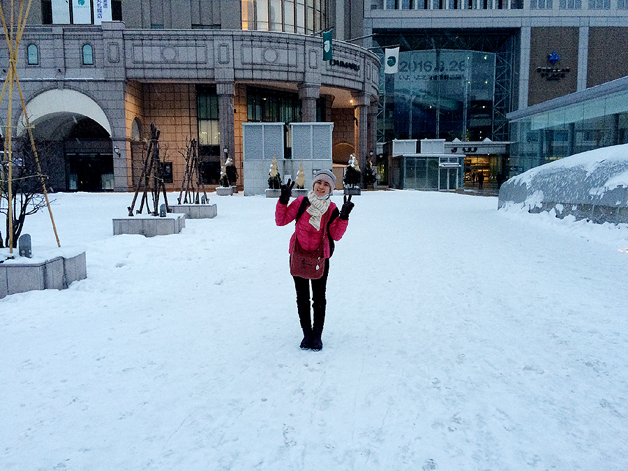 จากสนามบินไปนั่งรถไฟไปถึงสถานี Sapporo ประมาณ 40 นาที ออกจากสถานีแล้วจะมีตึก ESTA อยู่ซ้ายมือที่นี่จะมีแหล่งช็อบปิ้งขนาดใหญ่อยู่ครับรวมทั้งร้านอาหารด้วยแวะกันได้ตามสบายครับ