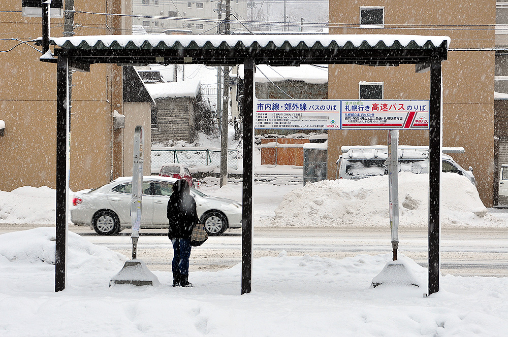 ระหว่างรอก็มีฝรั่งมารอรถเหมือนกันแต่เค้าไปยืนรอกลางหิมะตก(ในใจคิดว่าพวกเมิงไม่หนาวกันรึไงฟ่ะ)