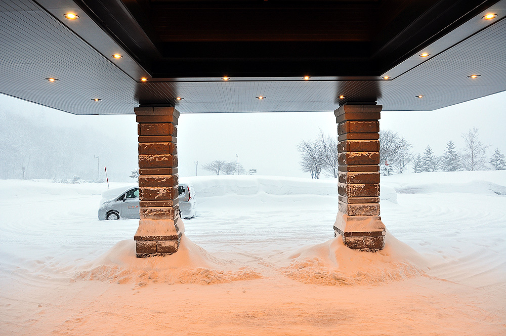บรรยากาศหิมะหน้าโรงแรมใครพักที่นี่ก็จะสบายหน่อยครับเล่นสกีเสร็จก็ขึ้นห้องพักได้เลยส่วนผมต้องกลับไปที่ A Tribute Portfolio Hotel ครับใช้เวลาประมาณ 10 นาที