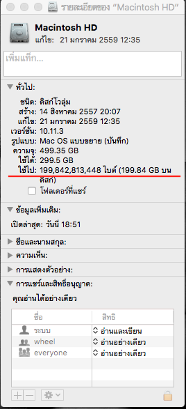 จากรูปมันบอกว่าใช้งานไปแล้ว199.84Gb เหลือใช้งาน299.5Gb