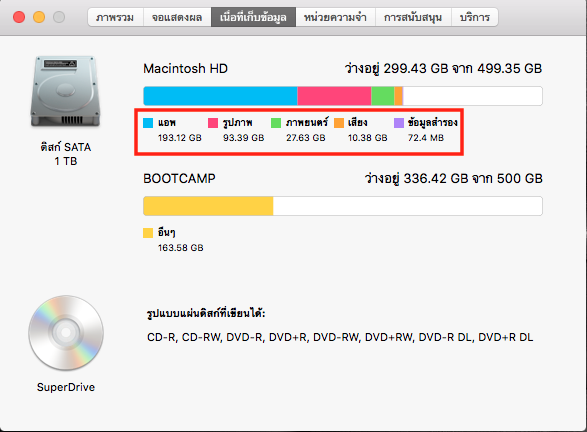 ช่วยด้วย!! พื้นที่เก็บข้อมูลของ MacBook เก็บข้อมูลเกินจริง