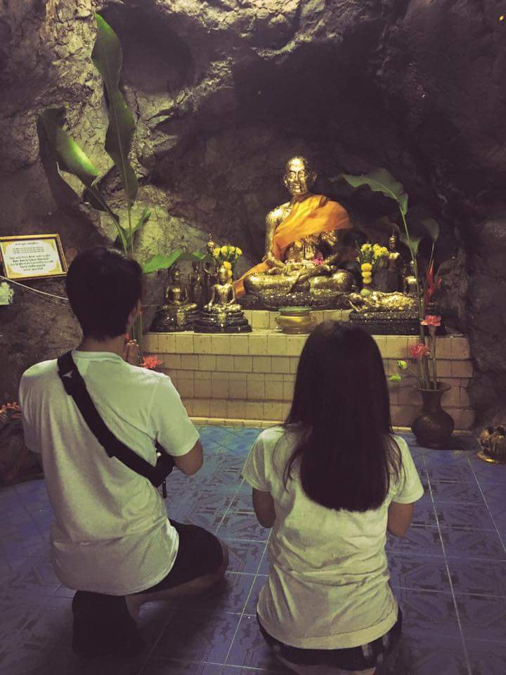คู่รักกำลังไหว้หลวงพ่อสิงห์ เจ้าของถ้ำแห่งนี้ ป้าที่ยืนอยู่ในถ้าให้เช่าพระแกเล่าว่าเนี่ยเป็นหลวงพ่อธุดง ท่านขี่หลังเสือมาที่วัดนี้และจำวัดอยู่ที่ถ้ำนี้ อ้อ...เกทละวัดถ้ำเสือมีที่มางี้นี่เอง วัดถ้าเสือหลวงพ่อสิงห์ขี่หลังเสือ...อื้มมม