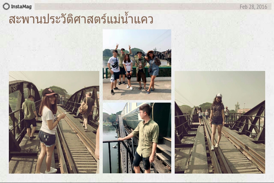 ออกจากวัดมาแล้วทริปนี้เริ่มต้นด้วยการเข้าวัดก็ดีนะ...ต่อกันเลยกับการไปดูสะพานข้ามแม่น้ำแควใครมากายจนบุรีไม่ไปถ่ายรูปนะ พูดเลยมาไม่ถึงเพราะที่นี่ถือว่าเป็นแลนด์มาร์ค ของจังหวัดเลยก็ว่าได้(เค้าคงไปกันมาหมดละเหลือแต่เรานี่เพิ่งไป อิอิ)ถ่ายรูปแชะๆ จู่รถไฟจากสิงคโปร์ก็มาจอดคาสะพานซะงั้น ยืนตากแดดตรงที่หลบข้างรางตั้งนาน....