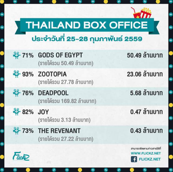 อัพเดตรายได้หนังในบ้านเรา ประจำวันที่ 25-28 กุมภาพันธ์ 2559 !!!