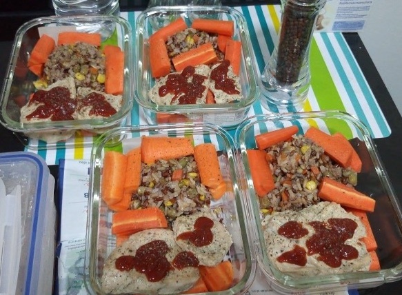 จึงเลือกที่จะทำอาหารที่(คิดว่าค่อนข้าง)เหมาะสมกับการลดน้ำหนัก รวมถึงต้องพกข้าวกล่องไปกินที่ทำงาน