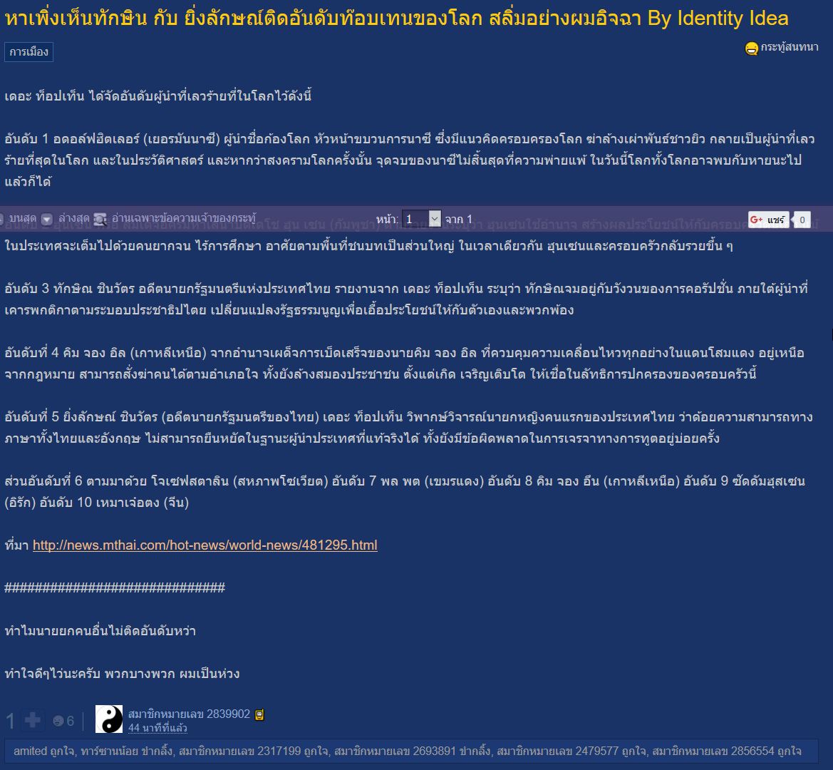 แต่ละกระทู้ มันไม่ใช่เจ้าของเว็ป the top tens เป็นคนตั้ง หรือ เป็นคนเลือก ใครก็ได้ สร้างล๊อคอิน