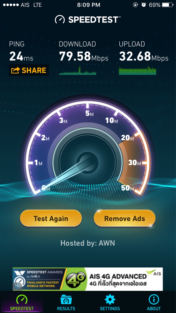 AIS super WIFI ที่ central แจ้งวัฒนะเร็วดีครับ