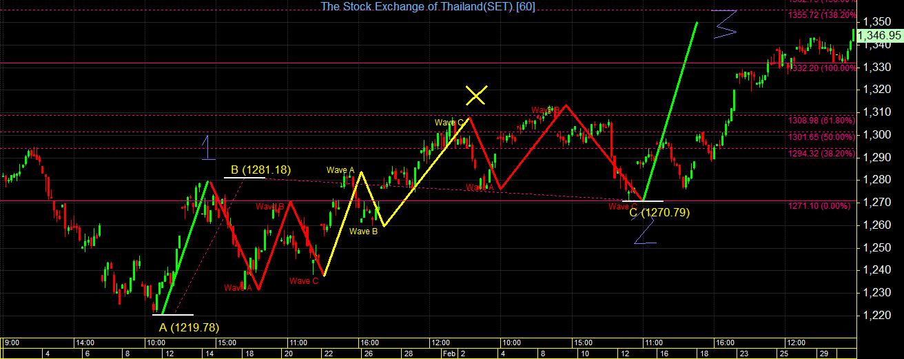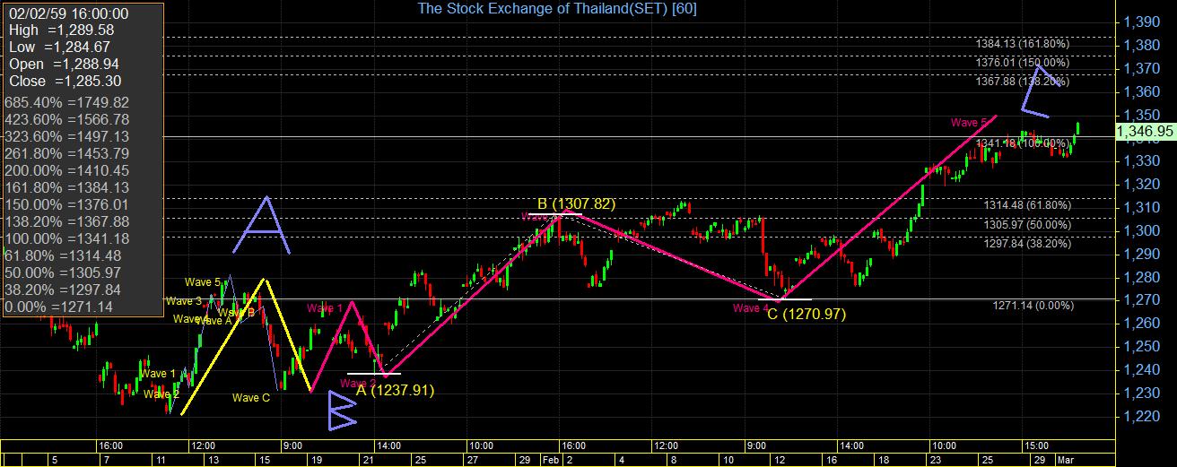 รูปแบบนี้ คลื่น3ไปได้ถึง 261.8% นั้นก็คือ1431.65 จุด