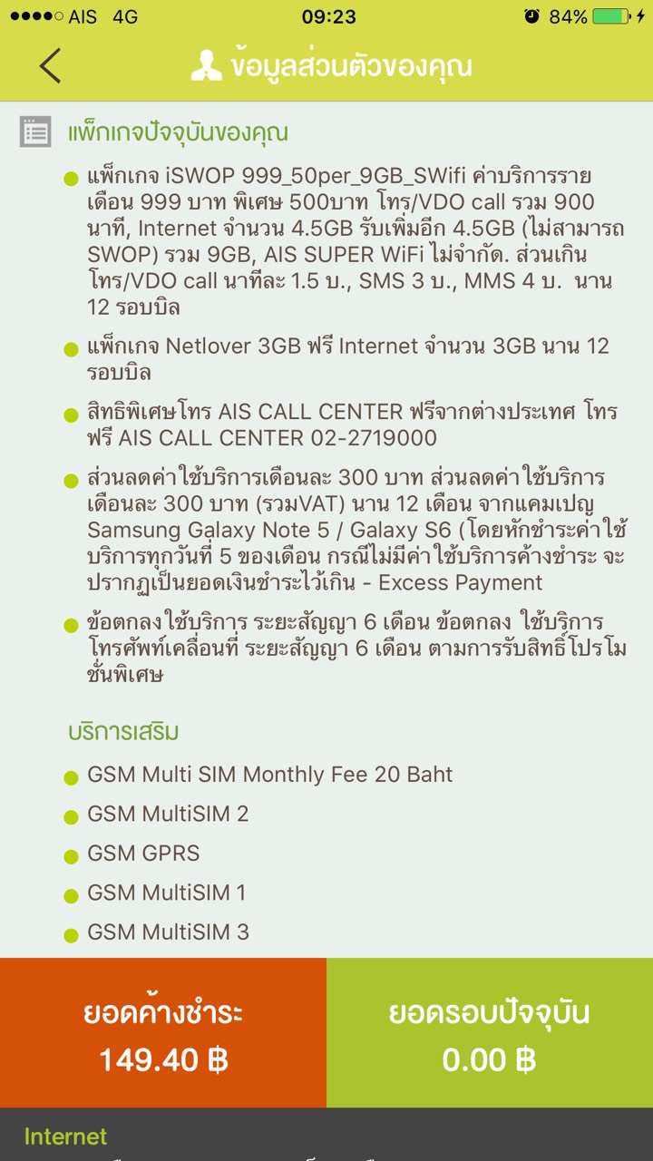 แต่จากรูปด้านล่าง ผมมีส่วนลดค่าบริการเดือนละ 300 บาทจากโครงการซื้อ s6 Note5 (สมัยที่โครงการยังไม่ติดสัญญาการใช้งาน) และมีข้อตกลงพิเศษจากการรับโปรโมชั่นพิเศษ 6 เดือน (ส่วนลด 50%)