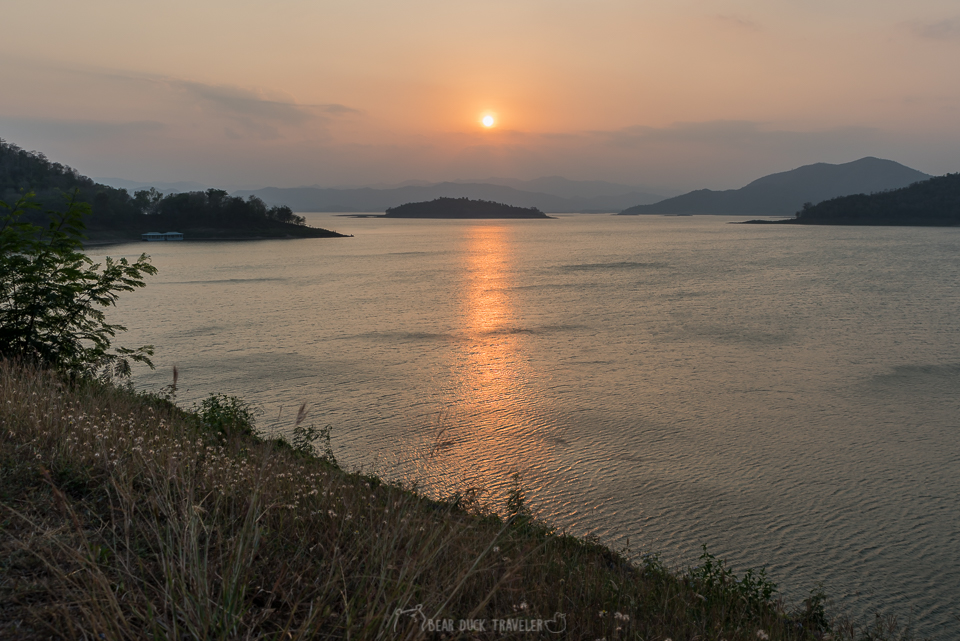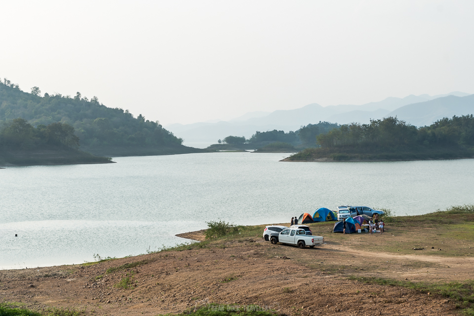 จุดหมายสุดท้ายของผมในคราวนี้ คือการเก็บแสงเย็นบนสันเขื่อนแก่งกระจาน เมื่อไปถึงก็พบว่ามีตากล้อง ทั้งไทย ทั้งฝรั่ง ถ่ายรูปกันคึกคัก บางคนมานั่งกินขนมตากลมเย็นๆ มีเรือหางยาวของชาวบ้าน วิ่งผ่านผืนน้ำสีทองอยู่ไกลลิบๆ เสริมด้วยเสียงท่อไอเสียงของมอเตอร์ไซค์ที่ซิ่งผ่านไปมาพอให้รำคาญใจ