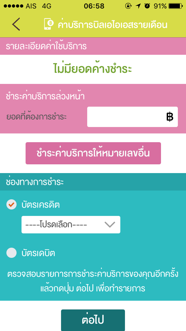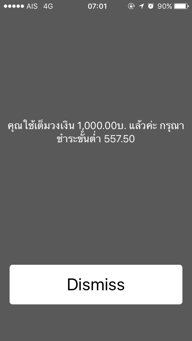 แจ้งว่ามียอดเกินวงเงินอยู่ ให้ชำระก่อนถึงจะสามารถใช้บริการได้
