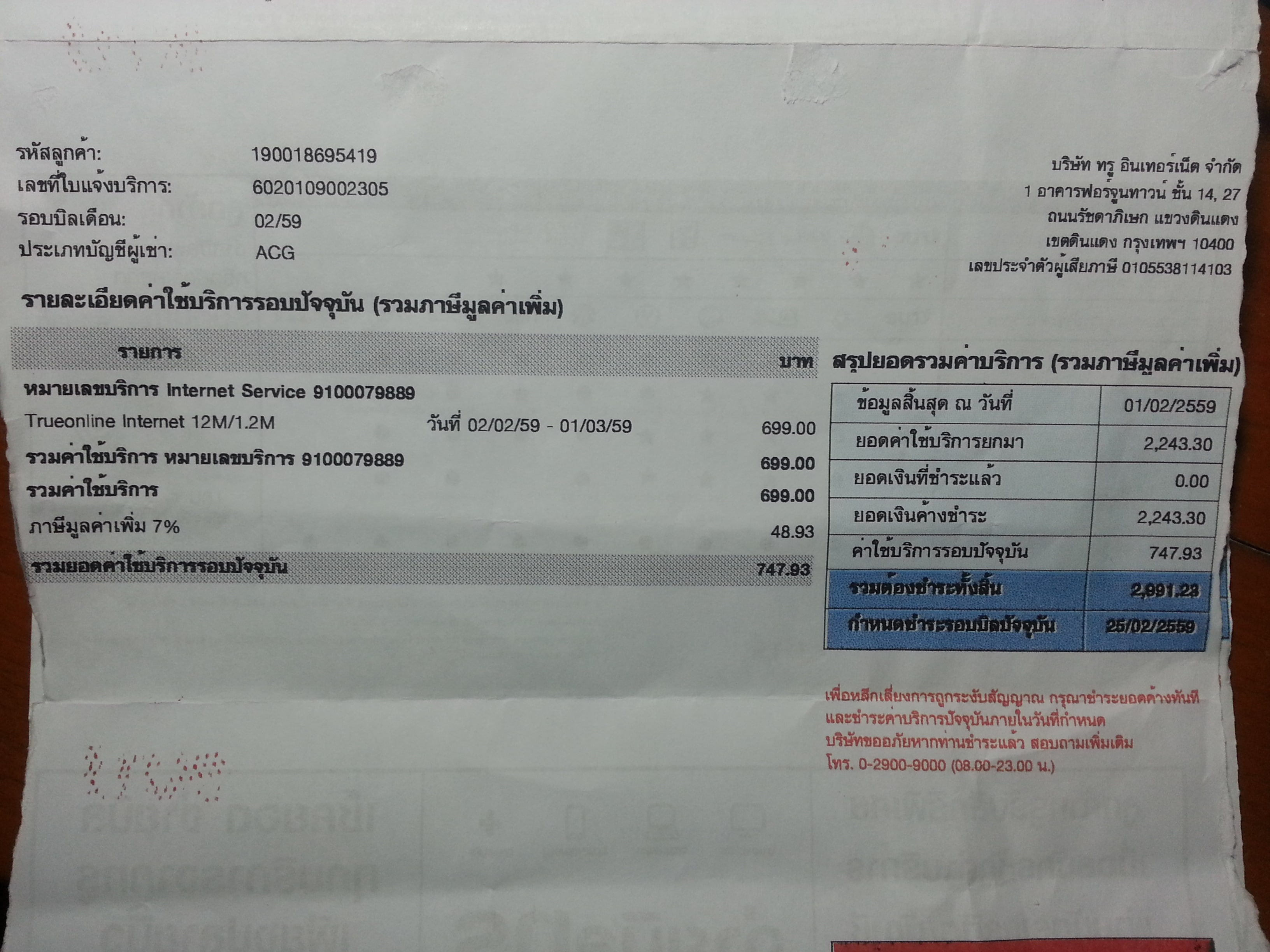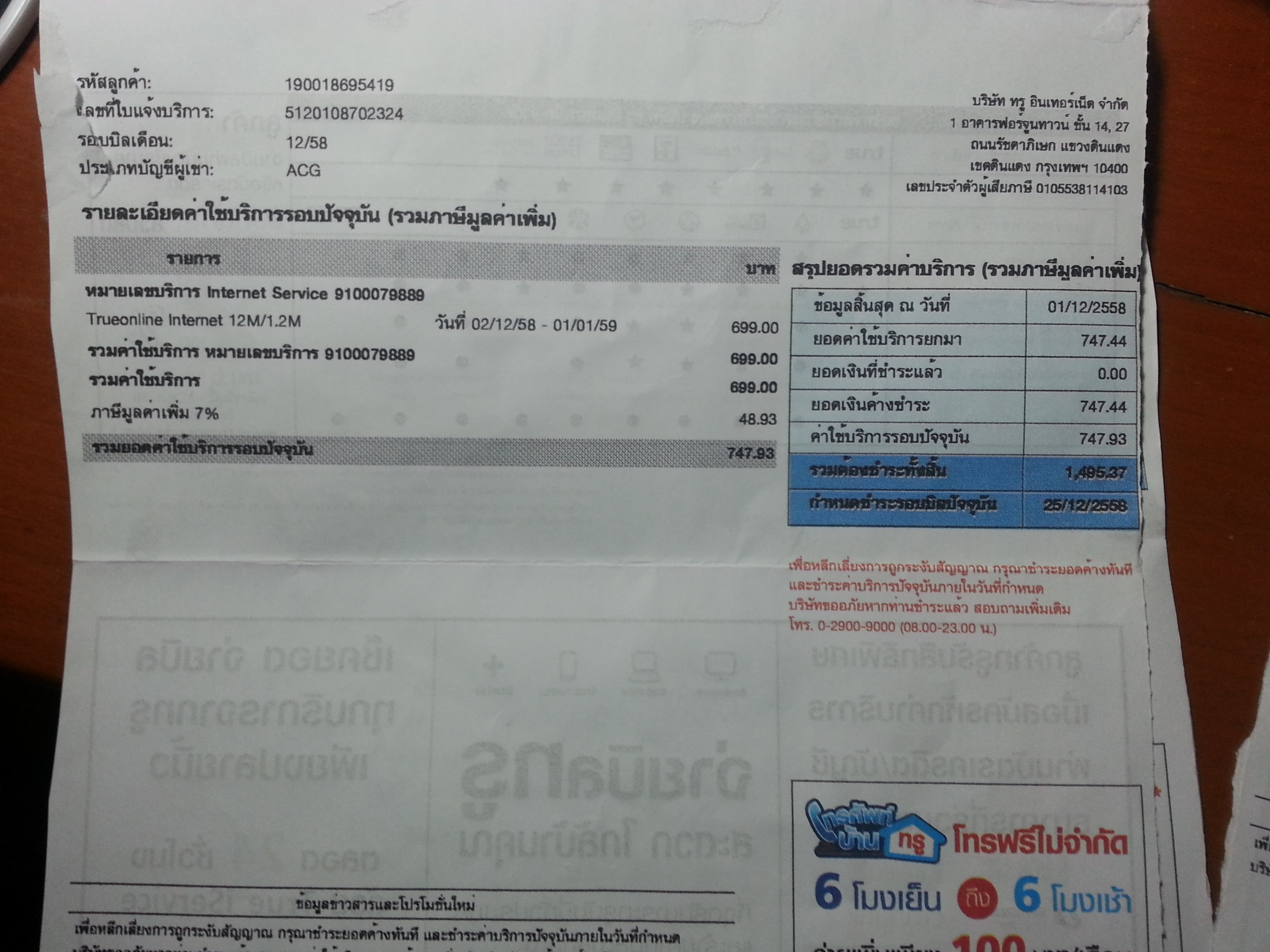 แต่งงกับบิลที่ส่งมา บ้านผมใช้เน็ตอย่างเดียว ทำไมยอดชำระถึงขึ้นเอาๆก็ไม่ทราบ