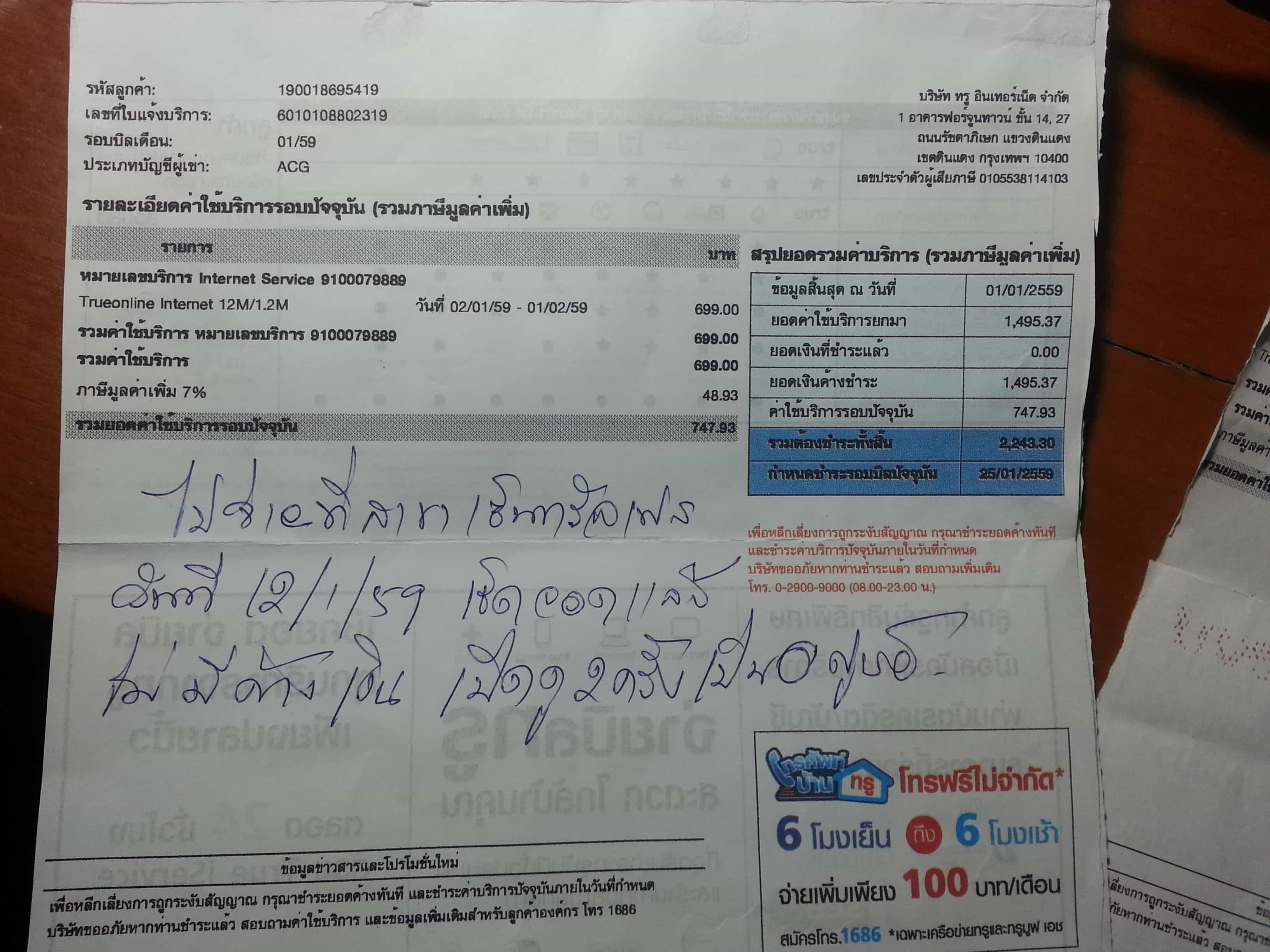วันนี้พ่อผมไปถามทาง True ที่เซนทรัล แอร์พอทเชียงใหม่ ใช้เครื่องเช็คก็แล้วว่าไม่ค่าค้างชำระ แต่บิลดันออกมาแบบนี้