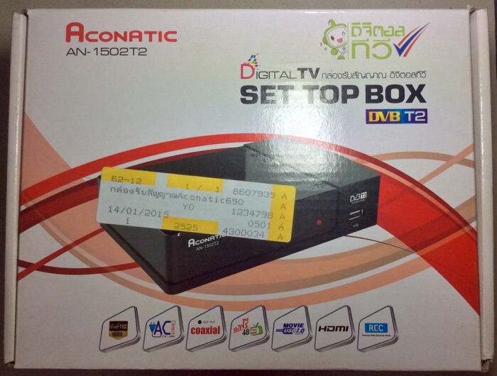 พึ่งใช้คูปองที่รัฐแจกมาแลกกล่องทีวีดิจิตอล เลยไปแลกที่ 7-11 ครับ เอากล่องของ aconatic ใช้คู่กับเสาของ soken A-2B และทีวีแบบ CRT ที่เป็นจอรุ่นเก่า 29" ของ sony ดูไปเรื่อยๆ มันจะค้างนะครับ ต้องถอ