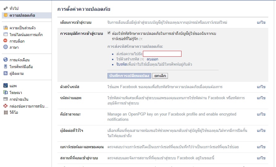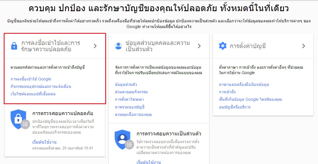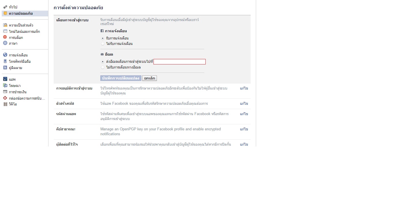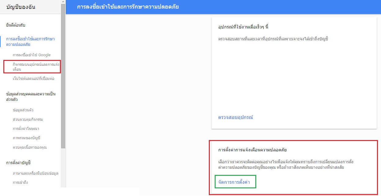 กดแล้วให้ดูทางขวา ตรง "การตั้งค่าการแจ้งเตือนความปลอดภัย" กด "จัดการการตั้งค่า" ค่ะ