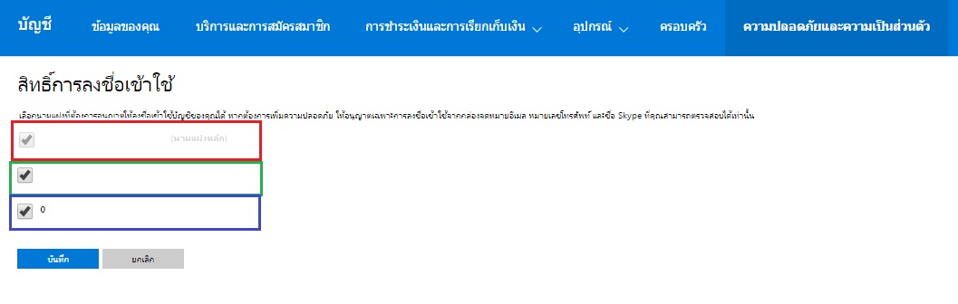 เลือก "การลงชื่อเข้าใช้และการรักษาความปลอดภัย"