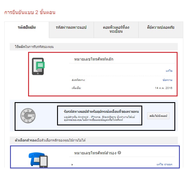 ช่องม่วง รหัสผ่านแอพ (ไม่เหมือนกับใน FB หรือ Mail นะคะ คนละตัวกัน อันนี้ คือ เราจะสองยืนยันถึง 2 ครั้ง 1 เบอร์หรือผ่านแอพพิเคชั่น และสอง เมื่อเราใช้แล้ว มันจะให้เราใส่รหัสที่เราตั้งไว้ค่ะ เฉพาะเจาะจงกับแอพนั้นเท่านั้น เช่น ทวีต1รหัส gmailอีก1รหัส จะไม่เหมือนกันค่ะ เราเลือกตั้งแต่อันไหน เราสามารถใช้ได้กับอันนั้นเท่านั้น )