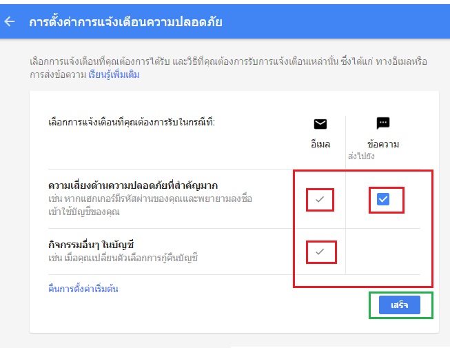 เลือก "ส่งอีเมลแจ้งเตือนการเข้าสู่ระบบ"