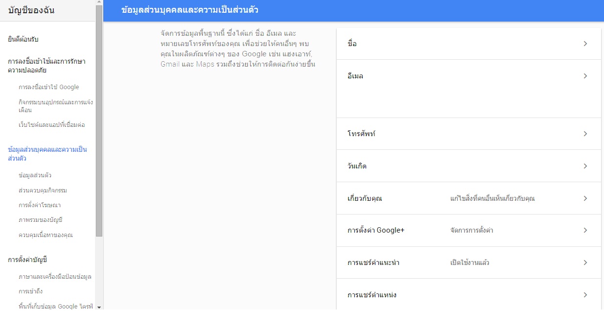 กดไปที่รายละเอียดบัญชี (รหัสผ่าน แอดเดรส โซนเวลา)
