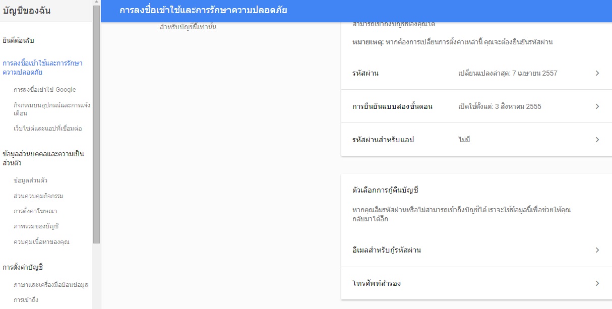 เพิ่มเติม อันนี้ลืมทำกรอบ ให้สังเกตุทางขวาอีกเช่นเดิม ตรง "ตัวเลือกการกู้คืนบัญชี" ค่ะ