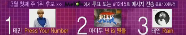 Taemin vs Mamamoo vs Taeyeon on SBS Inkigayo #1 Chart